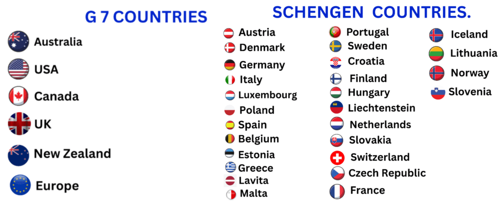 Australia | Canada | New Zealand| USA| USA B1 | UK |Schengen countries